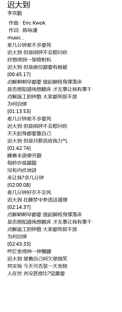 | [02:31.84] | 点解返工的钟数 大家都死捉不放 |