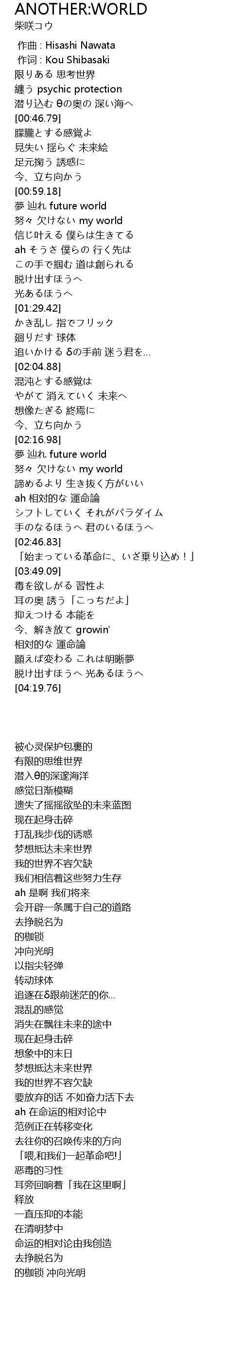 | [02:17.26] | 夢 辿れ future world |