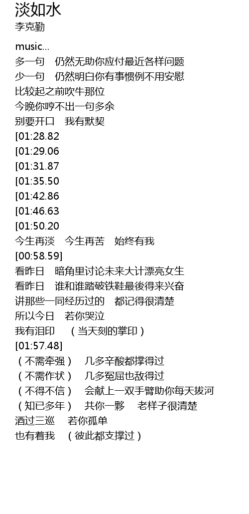 | [02:28.84][01:29.06][00:29.16] | 淡淡而过 (过渡期) |