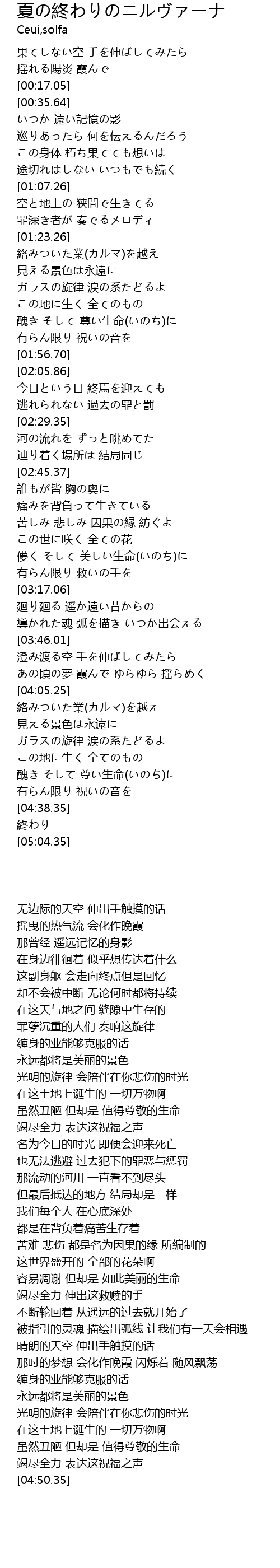 | [04:26.06] | 醜き そして 尊い生命(いのち)に |