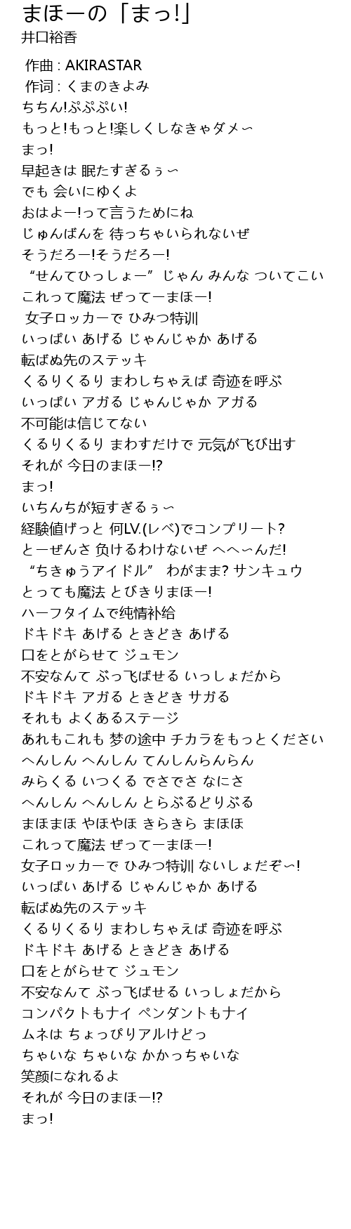 | [02:42.61] | まほまほ やほやほ きらきら まほほ |