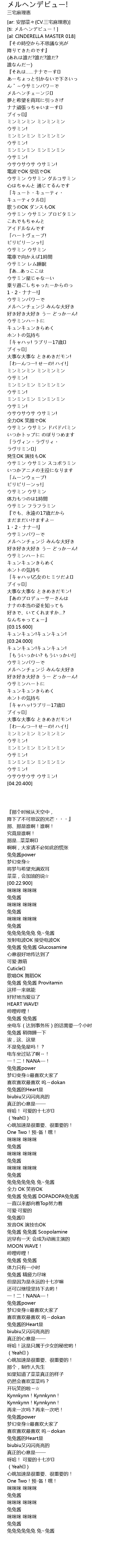 | [01:55.400] | ウサウサウサ ウサミン! |