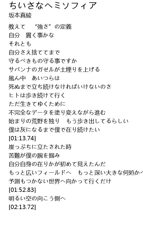 | [01:03.84] | 僕は灰になるまで僕で在り続けたい |