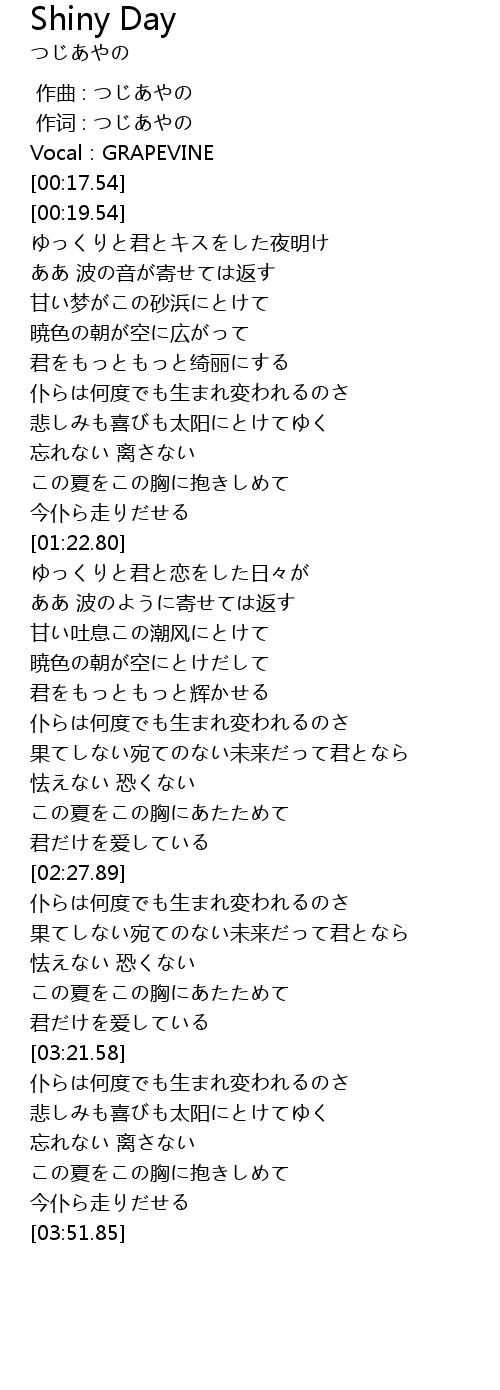 作词 : つじあやの |