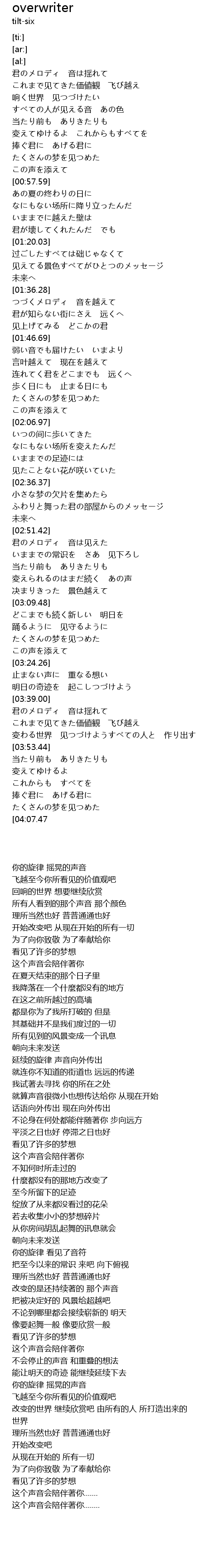 | [01:36.88] | つづくメロディ 音を越えて |