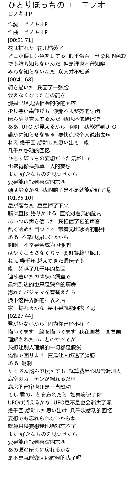 | [00:00.00] | 作詞:ピノキオP |