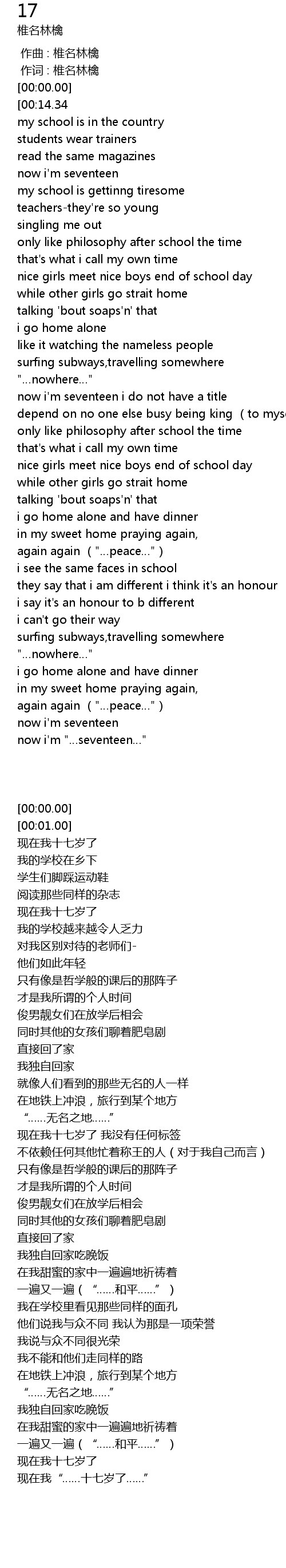 | [00:01.00][00:14.34] | now i' m seventeen |