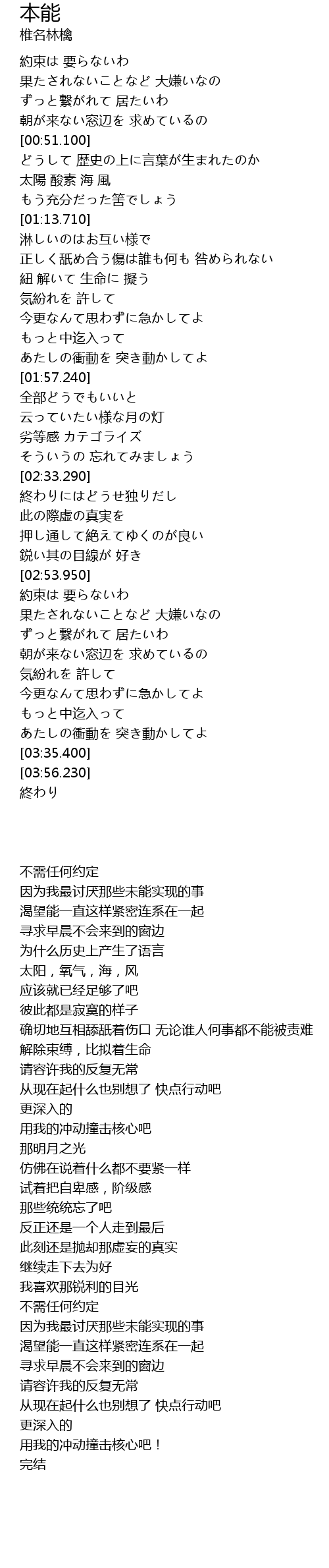 | [02:54.340] | 約束は 要らないわ |