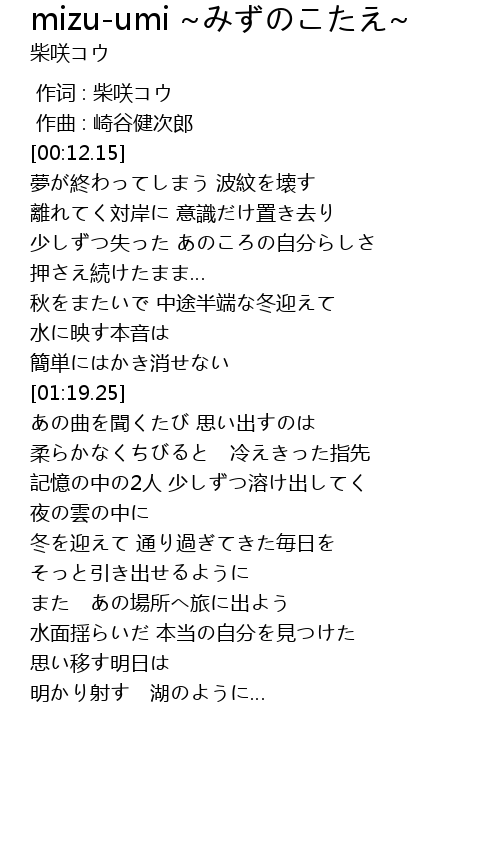 | [00:00.000] | 作词 : 柴咲コウ |