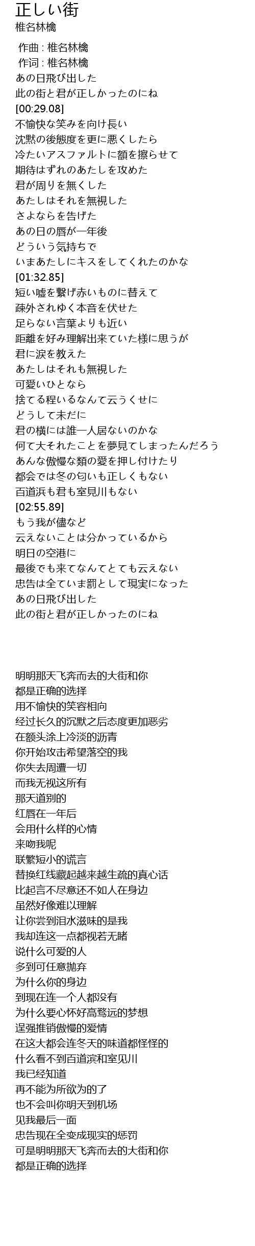 | [00:20.60] | 此の街と君が正しかったのにね |