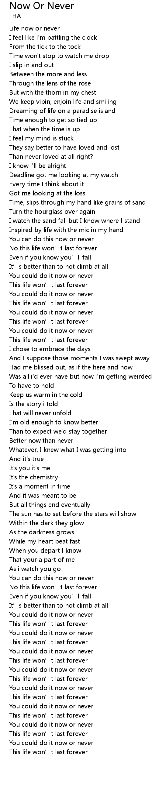 | [00:48.54] | You can do this now or never |
