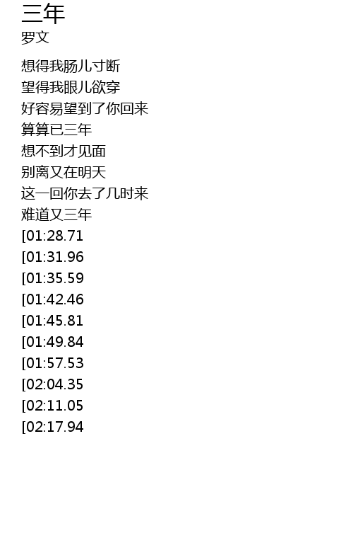 | [03:11.88][01:45.81] | 坚三年 |