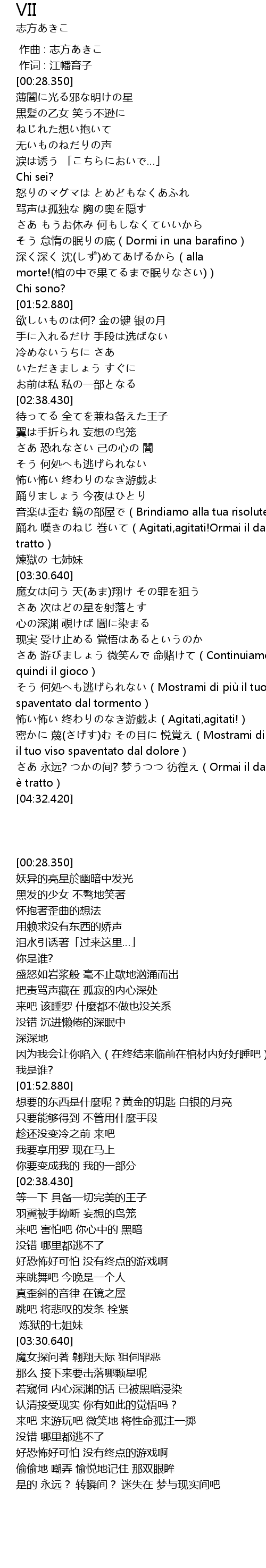 | [04:12.740] | 怖い怖い 终わりのなき游戯よ(Agitati,agitati!) |