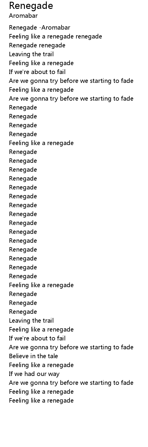 Feeling like a renegade renegade |