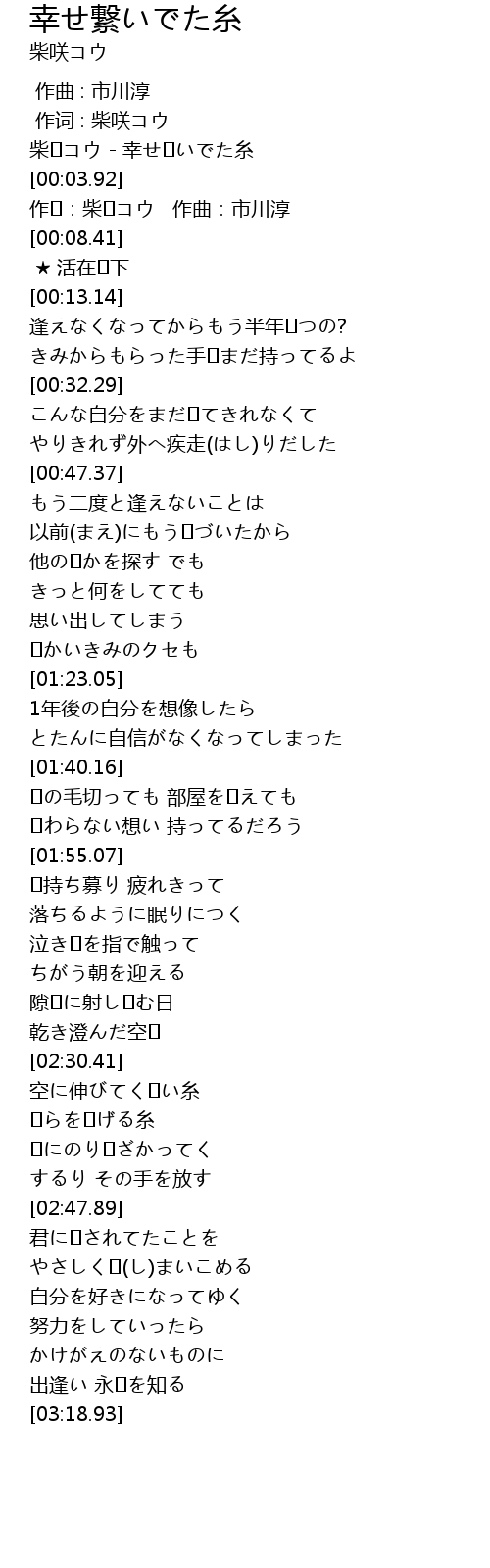 | [00:01.12] | 柴�コウ - 幸せ�いでた糸 |