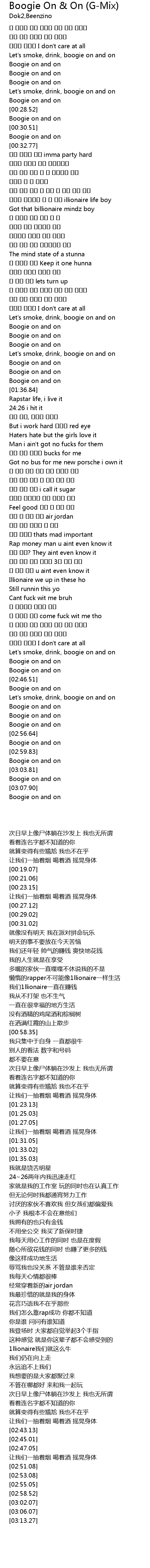 | [01:28.59] | Let' s smoke, drink, boogie on and on |