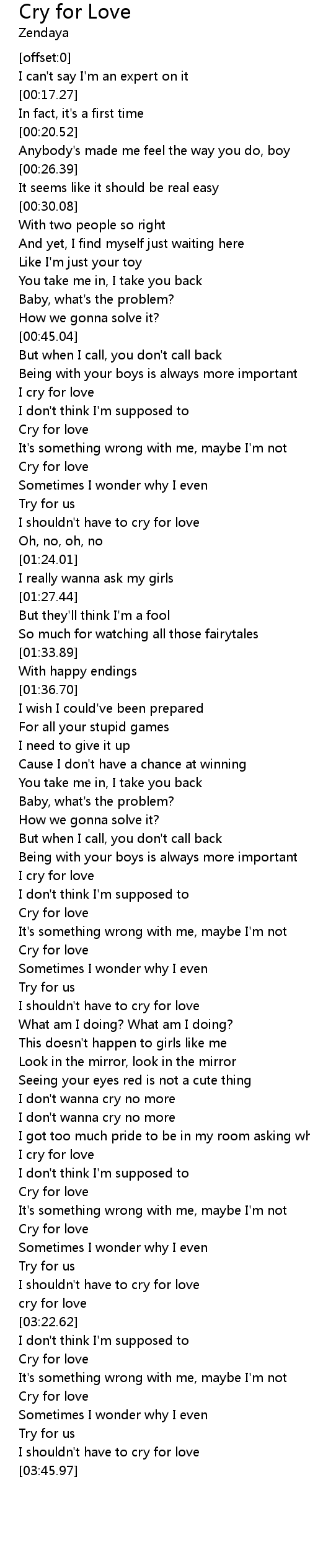 | [03:33.11] | Cry for love |