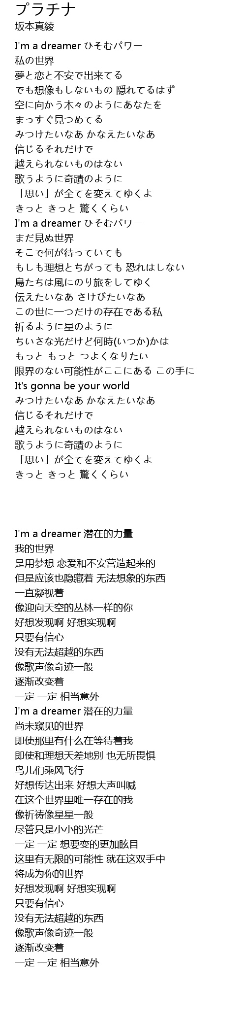 | [00:04.050] | I'm a dreamer ひそむパワー |