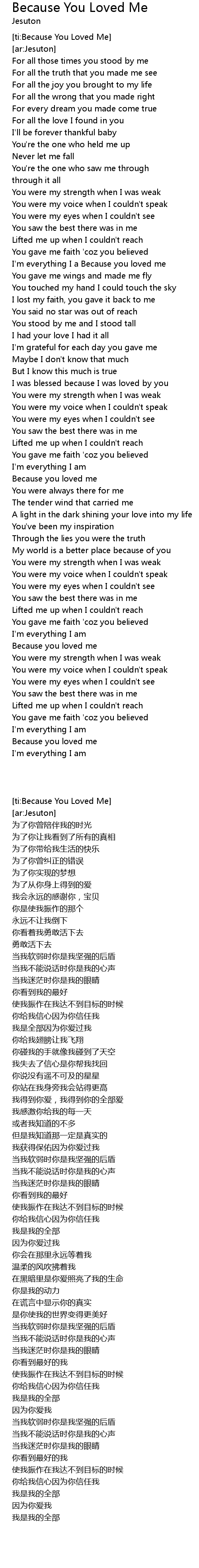 [ti:Because You Loved Me] |