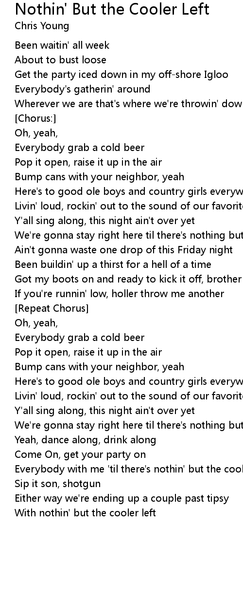 Everybody with me 'til there's nothin' but the cooler left |
