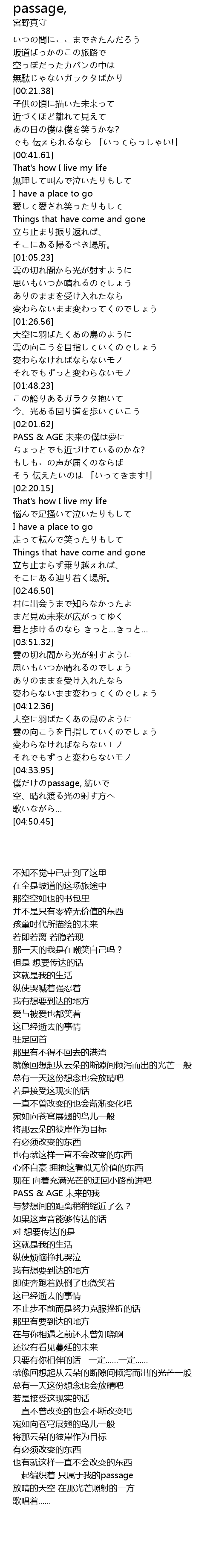 | [04:34.56] | 僕だけのpassage, 紡いで |
