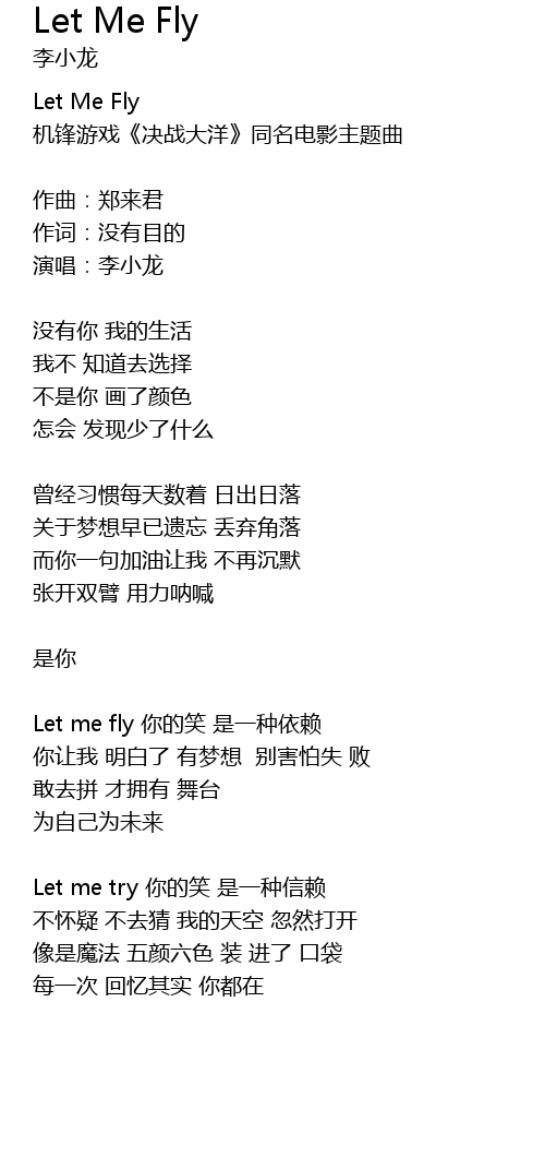 | Let me fly 你的笑 是一种依赖 | |