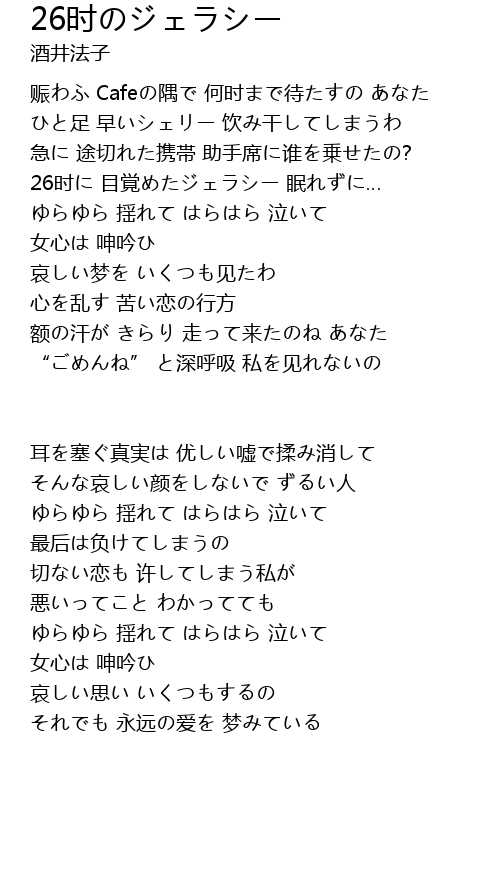 | 26时に 目覚めたジェラシー 眠れずに… | |