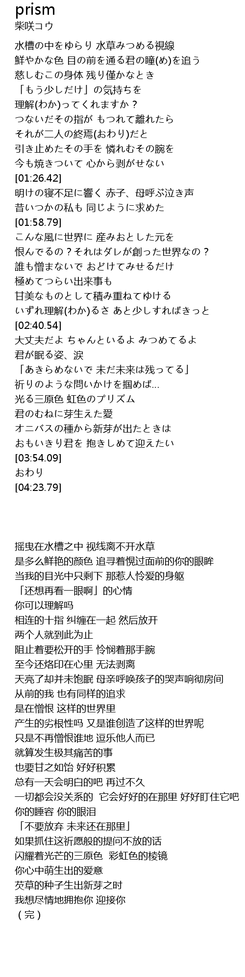 | [03:28.09] | 光る三原色 虹色のプリズム |