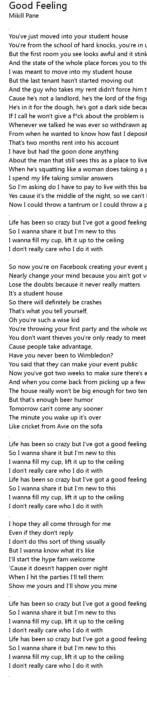 Life has been so crazy but I've got a good feeling |