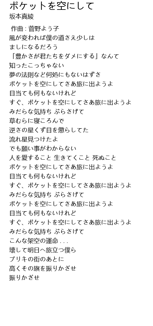 すぐ、ポケットを空にしてさあ旅に出ようよ |