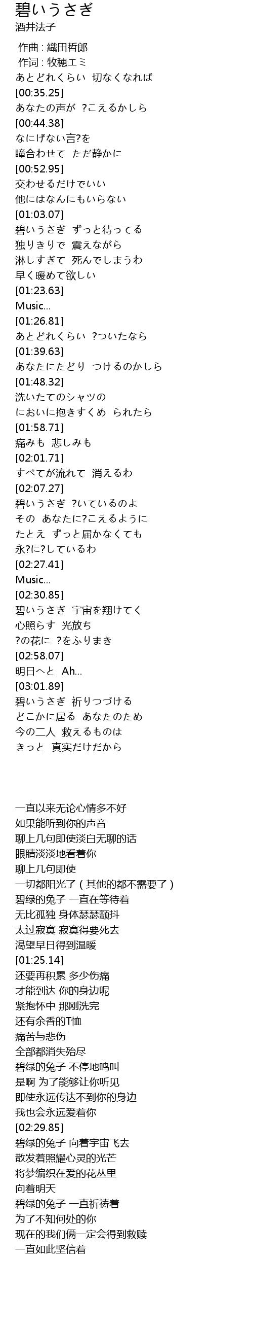 | [02:45.95] | 碧いうさぎ 宇宙を翔けてく |