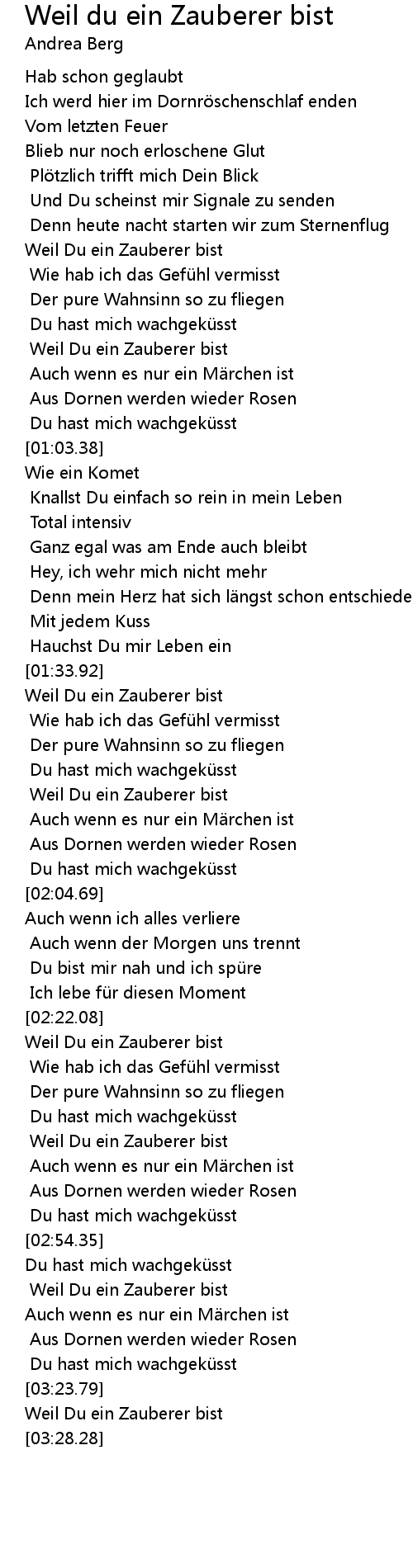 | [03:24.73] | Weil Du ein Zauberer bist |