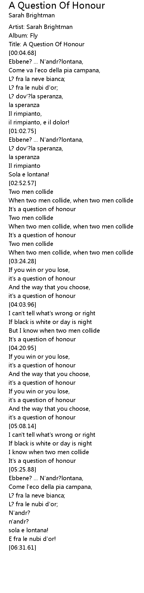 Title: A Question Of Honour |