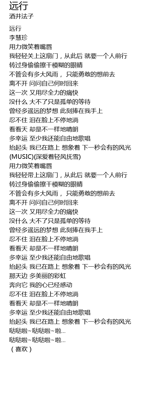 | [01:59.35] | 我轻轻带上这扇门,从此后 就要一个人前行 |