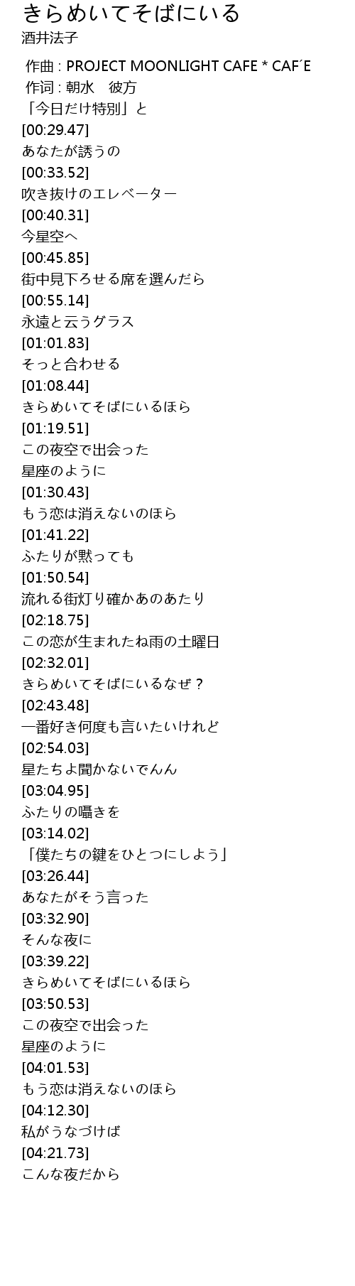 | [02:33.03] | きらめいてそばにいるなぜ? |