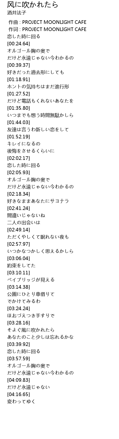 | [01:37.43] | いつまでも想う時間無駄かしら |