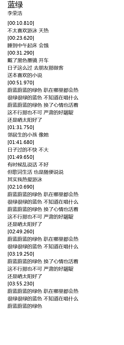 | [04:12.660] | 蔚蓝蔚蓝的绿色 |