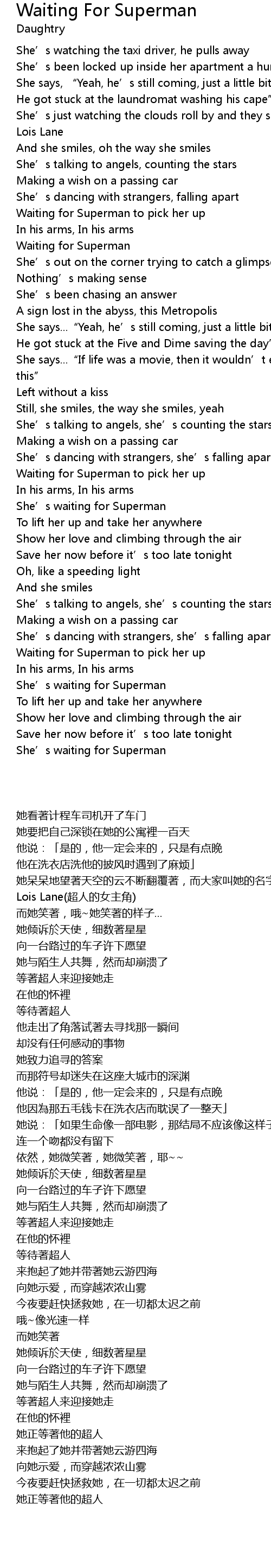 | [00:30.410] | She' s just watching the clouds roll by and they spell her name like Lois Lane |