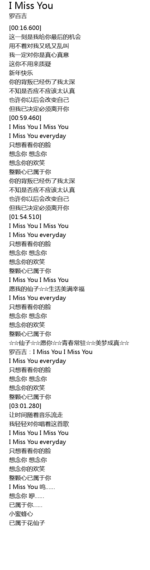 | [02:39.290] | luó bǎi jí: I Miss You I Miss You |