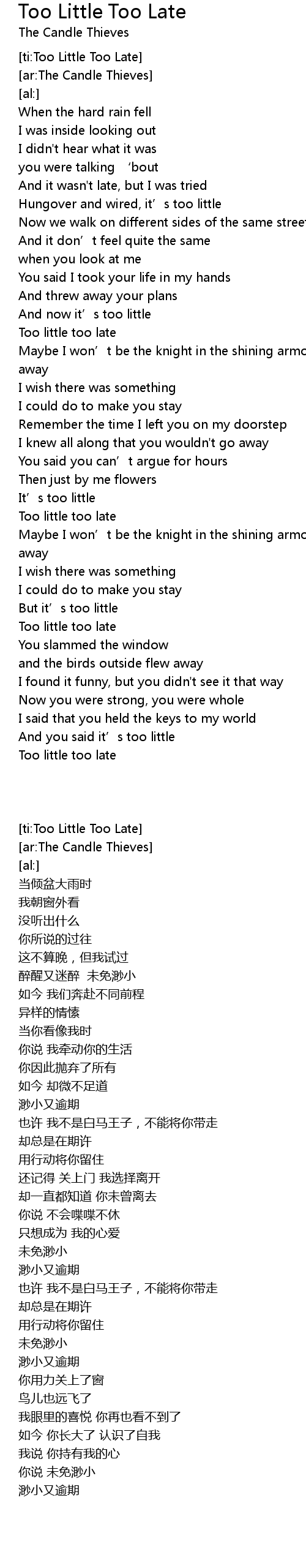 | [ti:Too Little Too Late] | |