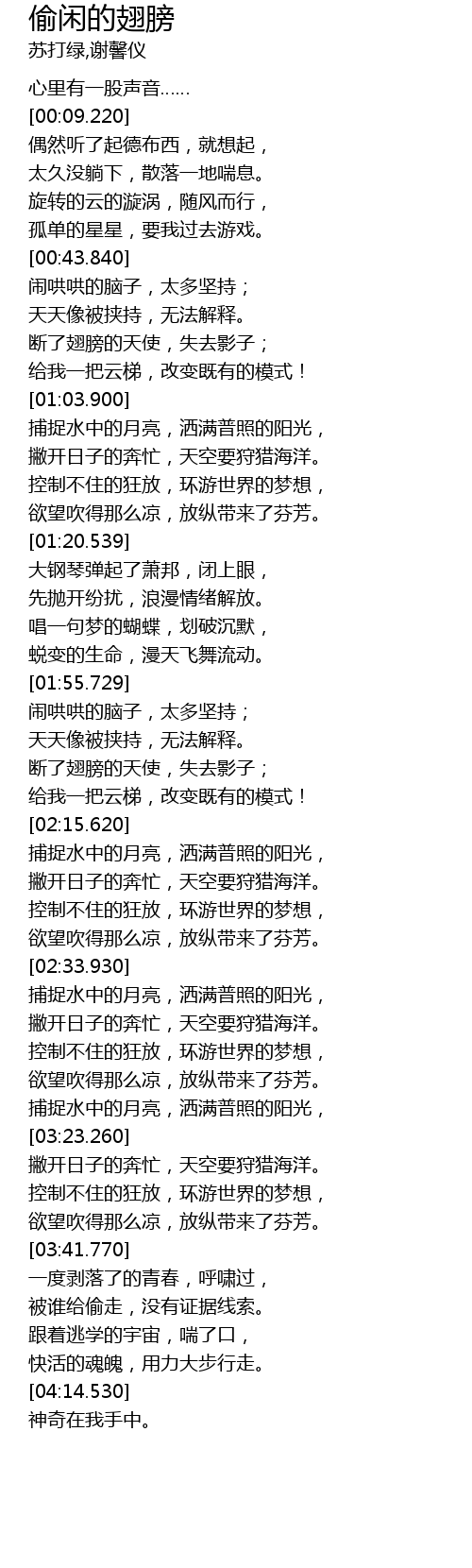 | [00:55.640] | duan le chi bang de tian shi, shi qu ying zi |