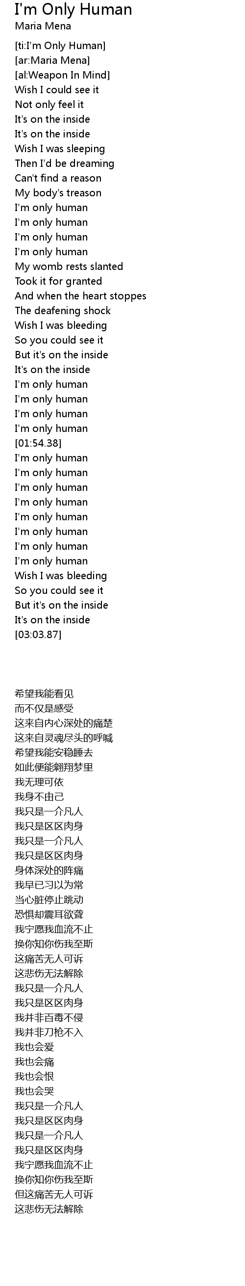 | [01:41.71] | I'm only human |
