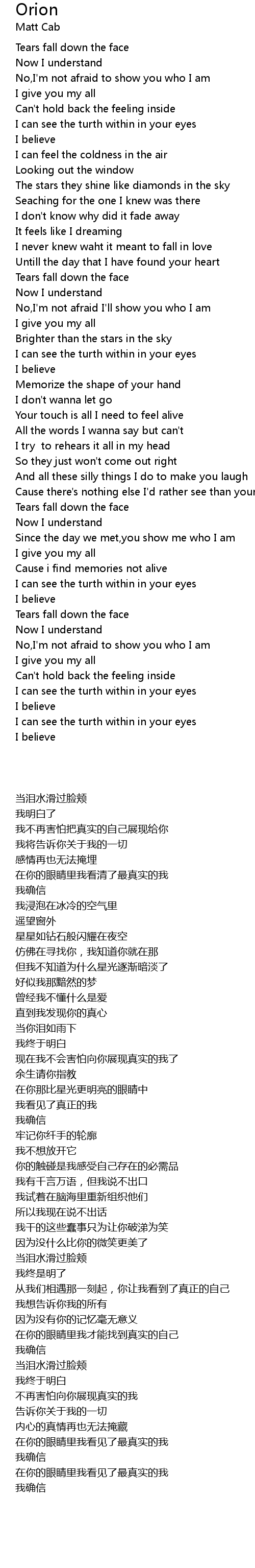 | [00:07.54] | No,I'm not afraid to show you who I am |