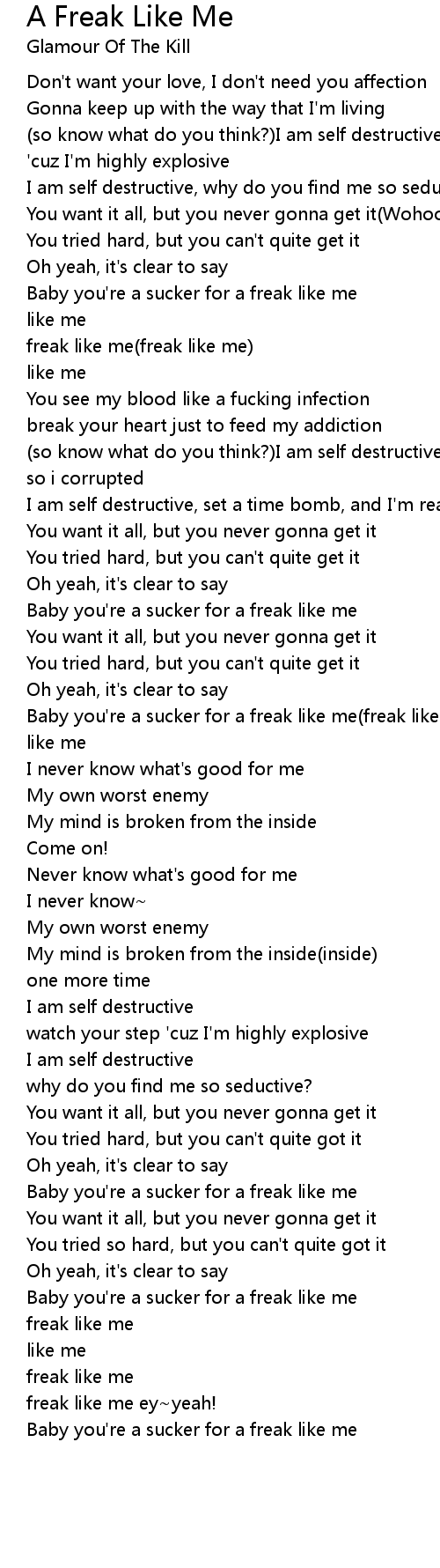 Baby you're a sucker for a freak like me(freak like me) |