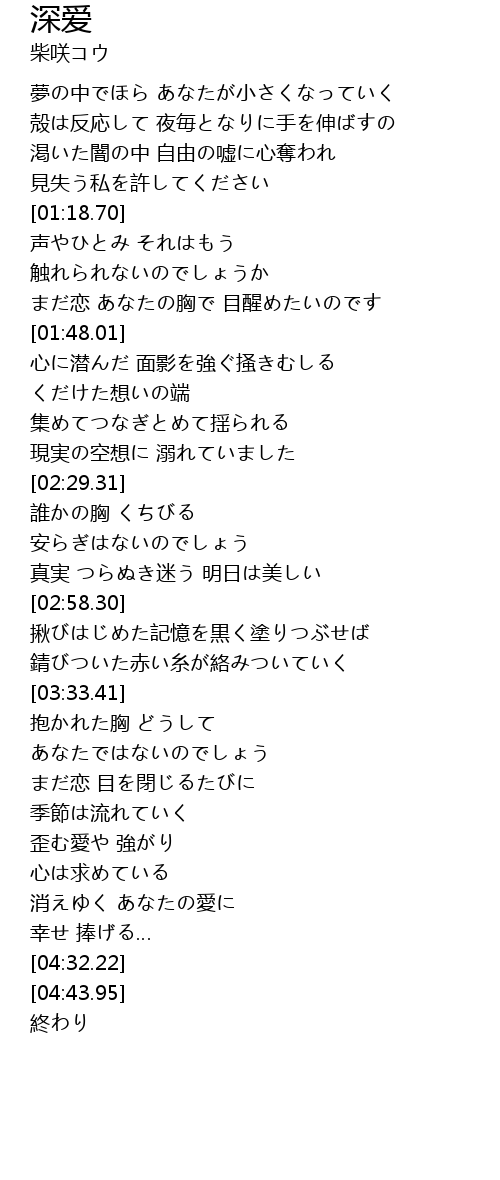 | [00:41.53] | 殻は反応して 夜毎となりに手を伸ばすの |