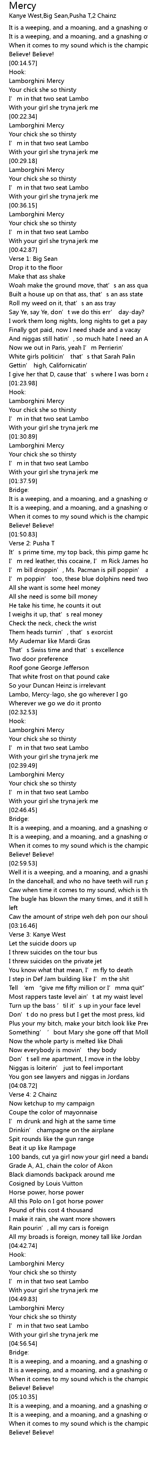 | [02:25.97] | Lambo, Mercy-lago, she go wherever I go |