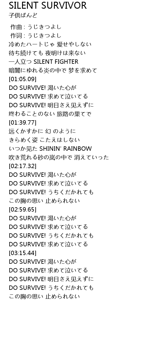 | [02:59.66] | DO SURVIVE! kě xīn |