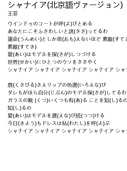 | Song | シャナイア(北京語ヴァージョン) |
