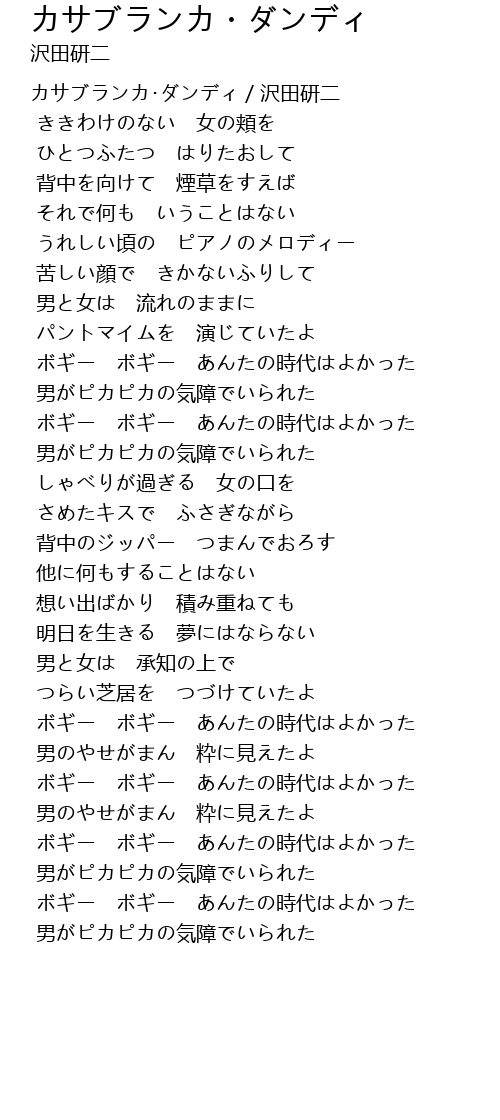 | Song | カサブランカ・ダンディ |