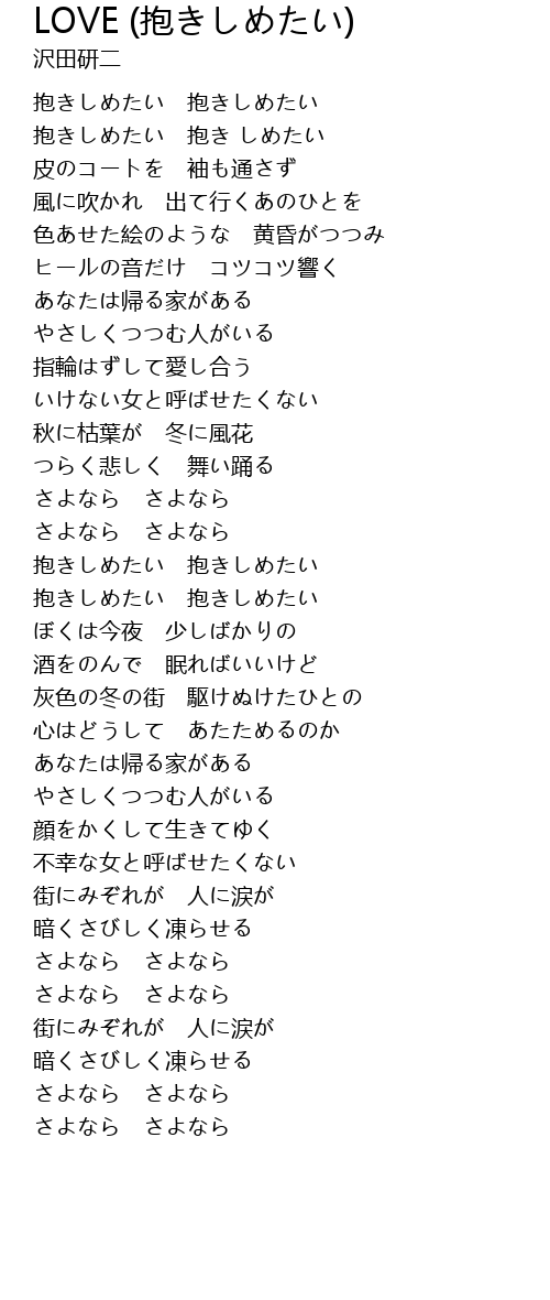 | [00:39.07] | 抱きしめたい 抱き しめたい |